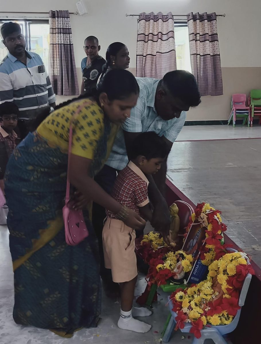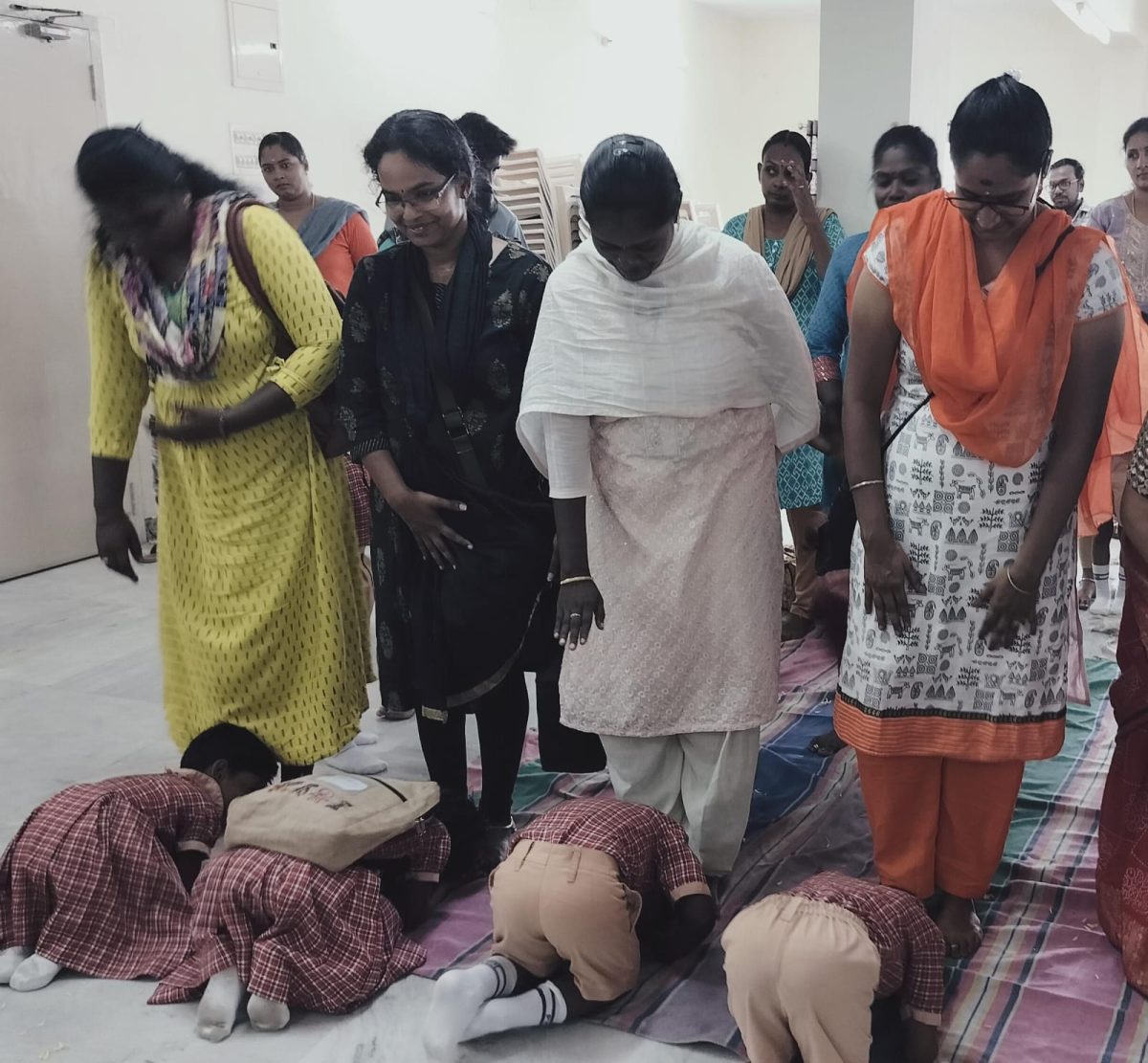 To mark this special occasion, parents gathered in the auditorium for a heartfelt ceremony — a moment to bless their children and also receive blessings from the school’s gurus.